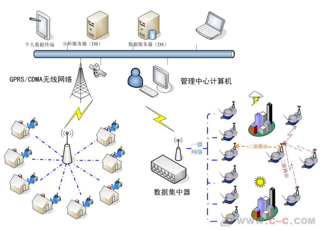 現(xiàn)在,基于GSM/GPRS/CDMA公網(wǎng)平臺的自動水表遠程抄表系統(tǒng)已成為了抄表行業(yè)的主流。它不僅徹底解決了上述抄表方法的不足,而且優(yōu)良的網(wǎng)絡保障、低廉的運行費用讓用戶受益匪淺,使得建立電力無線抄表系統(tǒng)不需要昂貴的設備,也不受距離和空間的限制。