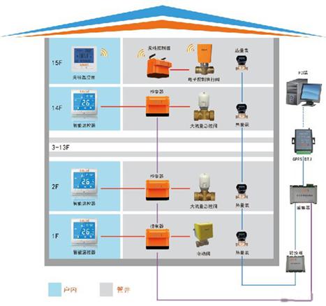 室溫控制器與遠傳電動閥門通常采用無線470MHz頻段通訊;閥門控制器與終端服務(wù)器采用MBUS+GPRS進行通信,實現(xiàn)遠程抄取用戶家庭溫度,熱量,遠程控制用戶閥門開關(guān)等功能。